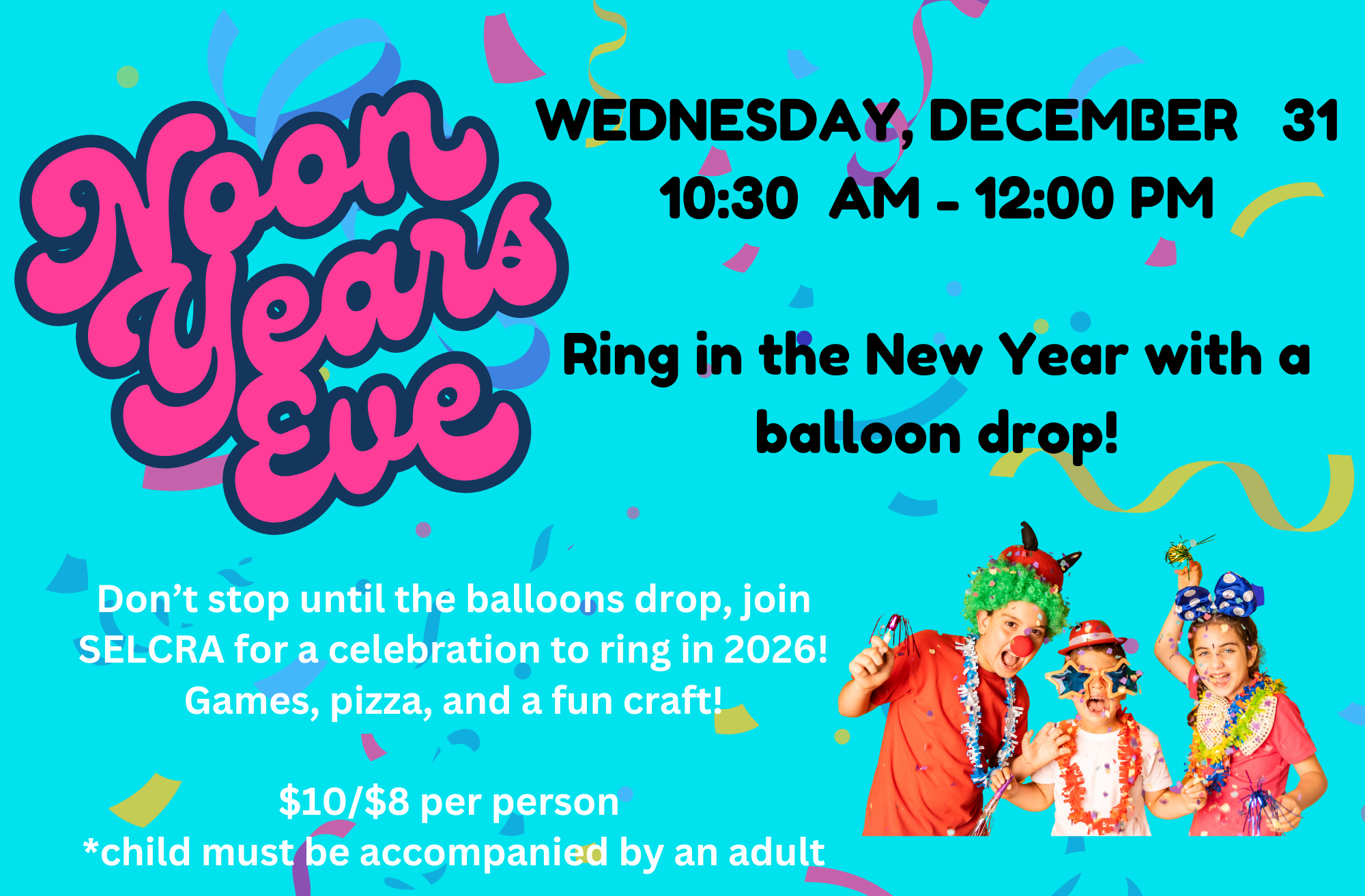 Noon Year's Eve celebration with balloon drop 2026.